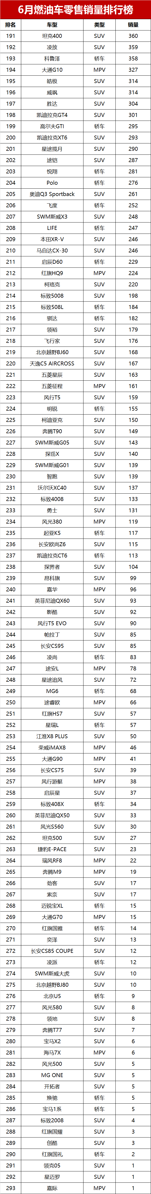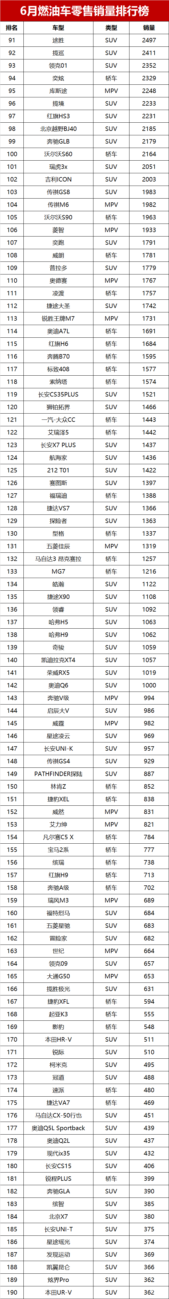 总体而言,2025年6月国内燃油车市场呈现多元化竞争格局。合资品牌在轿车和部分SUV细分市场仍有优势,自主品牌在SUV领域不断发力,通过提升产品力抢占市场份额。