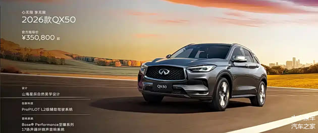 总结来说,2026款英菲尼迪QX50继续了其在中型豪华SUV市场的定位,通过对内饰配色的调整、配置的小幅升级和动力系统的稳定策略,进一步巩固了产品的特性。尽管外部市场的竞争环境在不断变化,这款车依然坚持为那些重视舒适度和品牌稳定性的消费者提供平衡的服务,确保了英菲尼迪在特定市场中的持久存在。在未来,随着智能配置的持续迭代,其在配置生态和人与车的交互体验上仍有进一步提升的潜力。