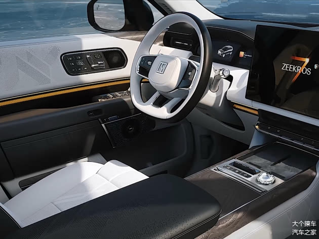 在座椅的设计上,极氪9X采纳了2+2+2的六座布局方式,其中第二排配备了两个独立的座椅,并配有扶手和腿托。预计这些座椅将支持零重力模式,为乘客提供一种仿佛身处云端的极致舒适体验。这款吸顶娱乐屏不仅座无虚席,而且尺寸也相当大,为后座的乘客提供了多样化的娱乐选项。
