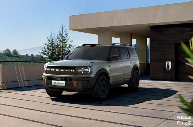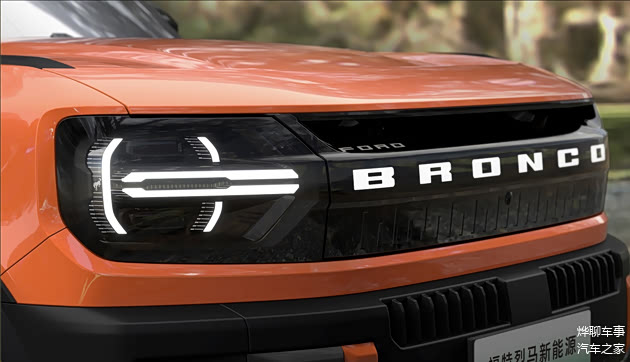 在福特烈马家族标志性的设计上,前脸造型进行了电动化革新。前格栅上的BRONCO字标可点亮,能与升级后的数字化大灯相连。