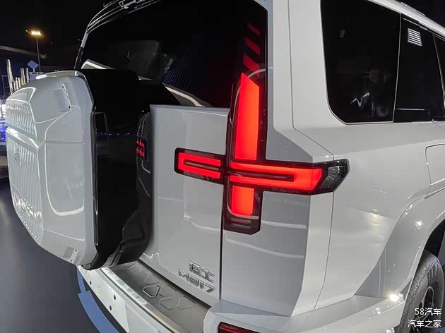车尾部分,新车同样沿用了硬派的设计,侧拉开启的尾门以及小书包也都是硬派SUV的经典设计元素。此外,十字的LED尾灯样式也是非常的前卫、个性,并且带来不错的辨识度。