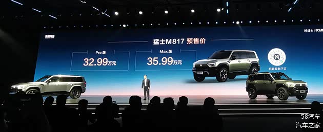 7月17日, 猛士M817正式开启预售,新车共推出2款车型,预售价为32.99-35.99万元,作为猛士品牌与华为达成战略合作后的首款落地产品,新车搭载了华为乾崑ADS4、鸿蒙座舱、乾崑车云等,全面覆盖城市通勤、近郊出游、长途穿越三大用车场景。