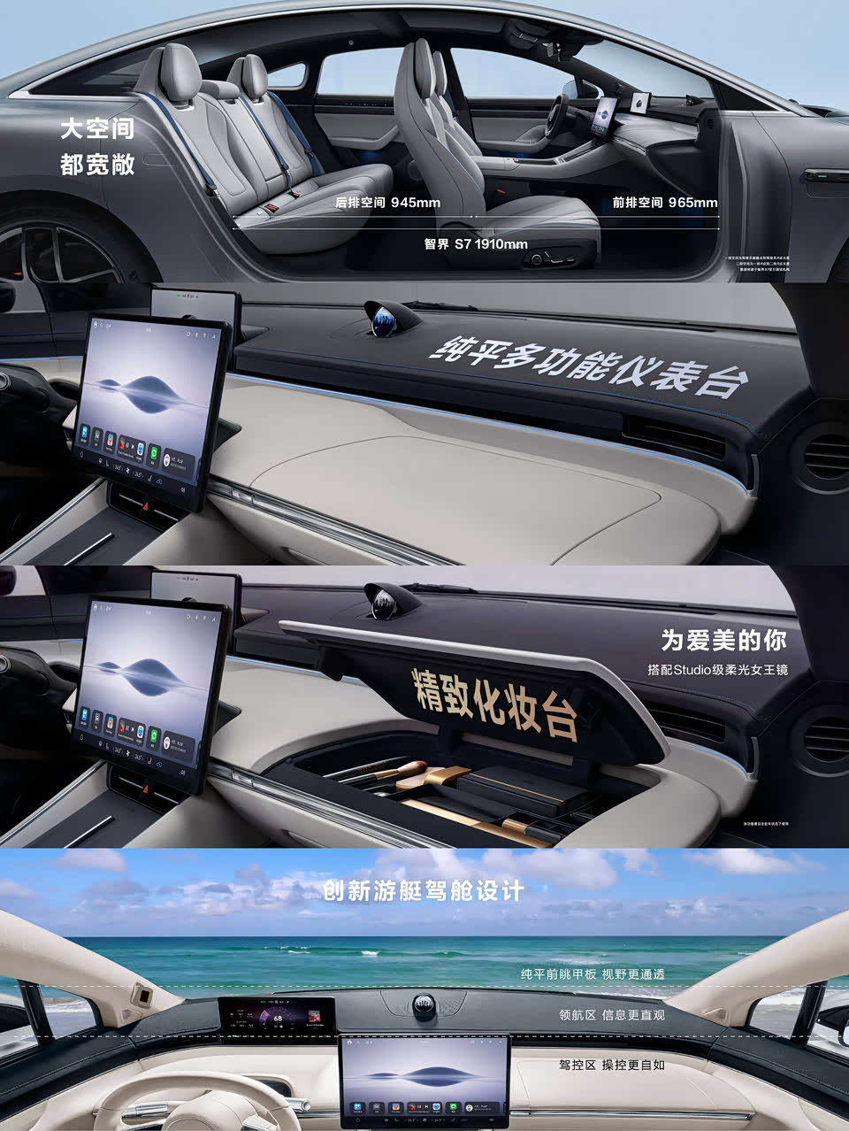 答案是中控台(图3),我们看智界S7的仪表盘离方向盘特别远,仪表台有巨大的空间,副驾上面完全可以当个电脑桌了