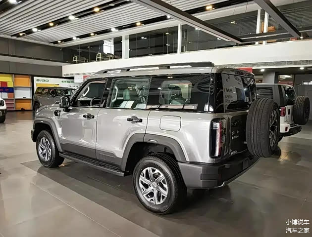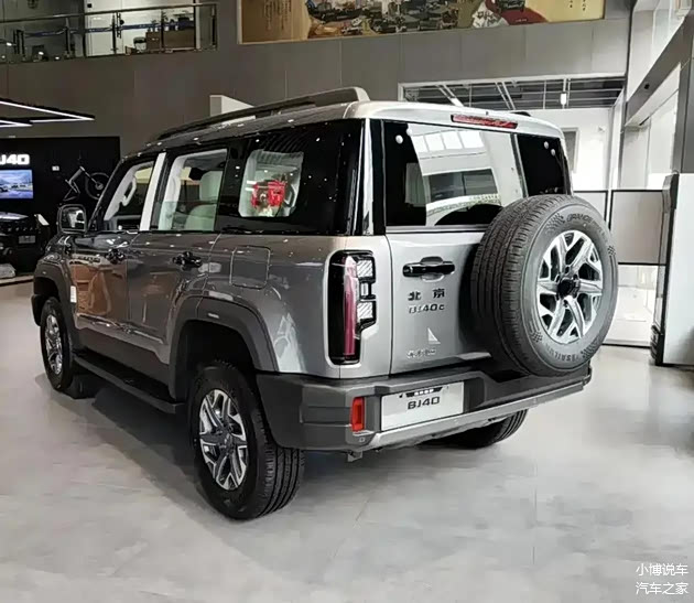 2026款BJ40燃油版在车尾部分延续了硬派越野车的经典设计元素。其标志性的全尺寸外挂式备胎展现了越野的粗旷风格;侧面的掀门设计既方便又实用,而粗大的后保杠进一步增强了车尾的保护和力量。