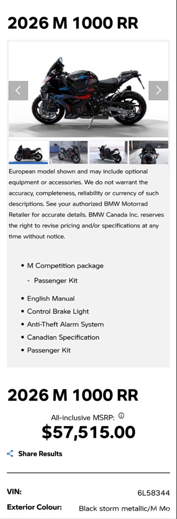 2026款宝马M1000RR雷霆 M竞赛港口实拍售价55万