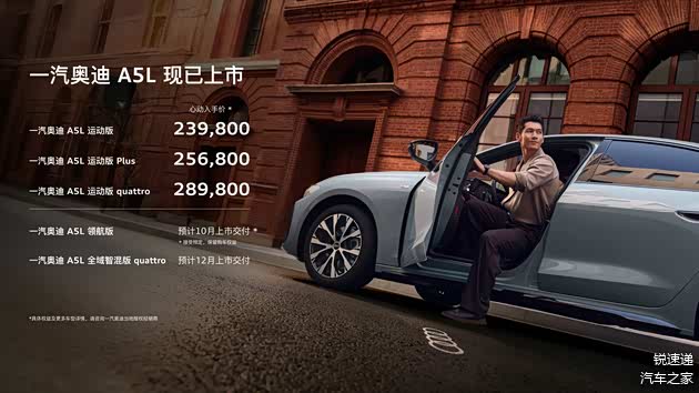 本次上市的一汽奥迪A5L 采用125KW前驱,150KW前驱和四驱,三种动力形式,均配备直列四缸2.0T发动机,配置方面值得注意的是除了传统配置的升级,全新A5L采用多种驾驶辅助方案,其中运动版、运动版Plus标配了自适应巡航、泊车辅助、倒车影像;运动版quattro配置了带车道变换的自适应巡航、泊车辅助高级版、带透明底盘的全景影像;领航版则配备了具有华为乾崑技术的驾驶辅助和泊车辅助系统、带透明底盘的全景影像(详见本文官方配置表附图)。