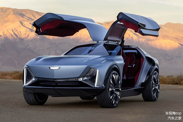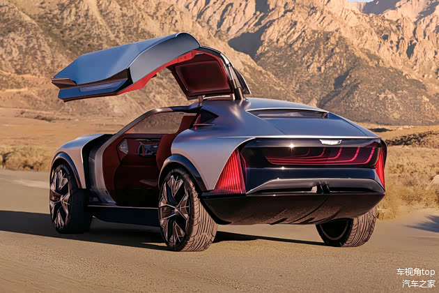 先声明一下,凯迪拉克新闻发布会上并没有透露任何关于Elevated Velocity动力装置的信息,只知道它是纯电动的,动力强劲,能够提供媲美超级跑车的加速动力。车身尺寸(未指定)非常庞大,属于快背式设计,搭配由亚麻纤维复合材料制成的24寸巨型轮毂。自适应空气悬架可根据所选驾驶模式调节离地间隙。车门非常宽大,形似鸥翼,可同时通往第一排和第二排座椅,车身没有中央支柱。