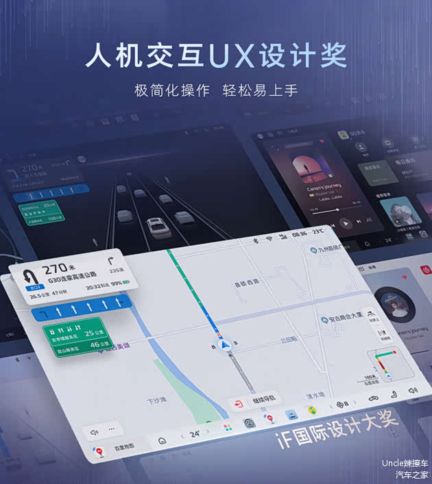 全球顶级IF设计大奖的UI/UX加持,让功能图标一眼可识别、字号梯度清晰,主副驾都能无障碍读取。