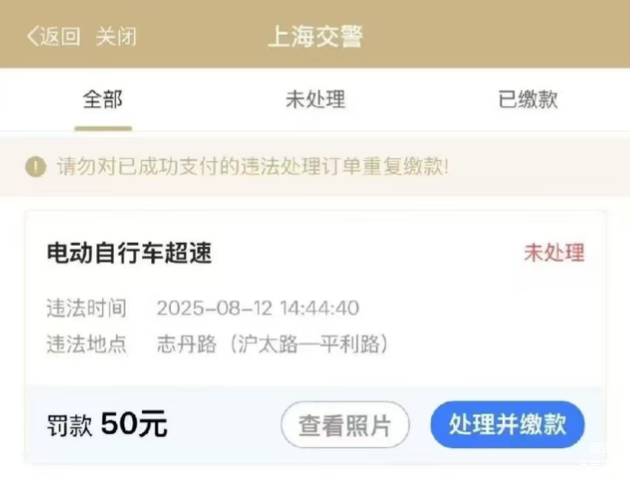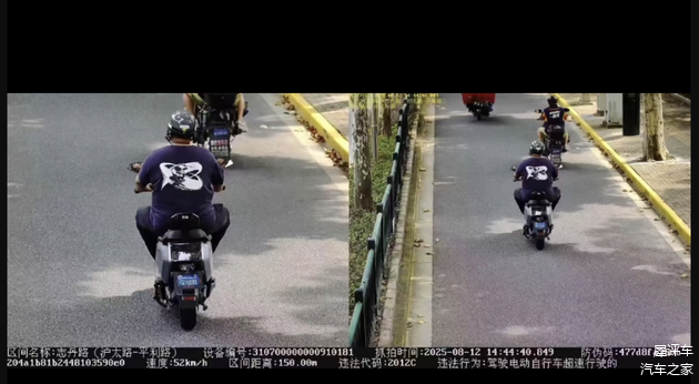 最近几天,多位网友在社交平台晒出了自己的“电动自行车超速”罚单,罚款都是50元。其中有一个网友还晒出了超速时被拍的照片,显示在志丹路(沪太路-平利路),当时速度52km/h,违法代码2012C。