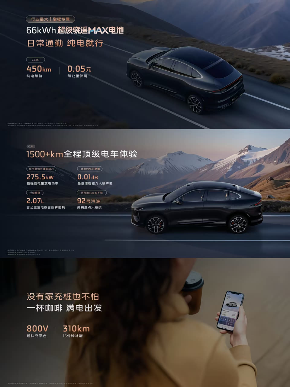 1、新一代智己LS6超级增程版搭载“恒星”超级增程技术,CLTC纯电续航达450公里,综合续航1502km,支持800V超快充,15分钟补能310km,百公里综合油耗低至2.07L,有效缓解续航与补能焦虑。该版本凭借23.99万元的预售权益价和满配科技,成为20万级增程SUV市场的“品价比”首选。