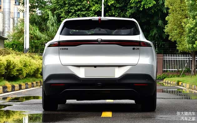 车身侧面配备隐藏式门把手、黑色外后视镜及18英寸轮辋(高配可选20英寸),其长宽高分别为4620×1900×1600mm,轴距2880mm。尾部贯穿式灯组与V型扰流板强化了运动感。