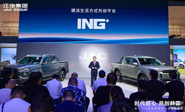 2025年8月29日,2025成都国际车展盛大开幕。时代匠心,共创共赢!江汽集团携多款车型重磅登场,江淮新能源皮卡双子星——悍途PHEV、悍途EV全球上市,15.98万元起售。江汽集团控股公司党委书记、董事长、总经理项兴初携管理团队出席,中国男子举重大级别首枚奥运金牌获得者、世界冠军刘焕华现场助阵,与来自五湖四海的媒体、合作伙伴共同见证江淮皮卡的这一重要里程碑。活动现场,江淮皮卡重磅发布用户品牌【ING+】,特邀四大领域用户成为悍途PHEV先行官,致力于与全球用户一起打造有趣味、有温度、有深度的硬派生活方式共创平台。