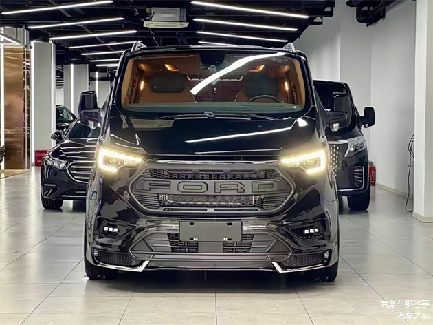 整个车子搭载的是2.0t的9at的发动机,目前有柴油版和汽油版均可以进行选择。底盘上来讲的话是有4档高低可调节的空气悬挂,所以它出行的驾驶感受和乘坐感受在某种程度上都有一定的舒适度。其次车子的车身尺寸长度在5米,宽度在两米,高度在两米,车型非常的方正,里面空间比较大,车头比较短,相对于同级别的丰田赛那和别克gl8对比,它的尺寸空间是最大的。从外观到立式都有非常高端又大气的姿态,首先外观上是猛禽的ford大字母的一个中网,非常的具有运动风,年轻人很喜欢这款车子。