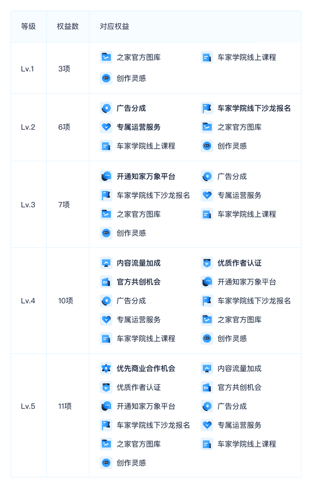 以上为本次车家号创作者等级升级细则,如有问题,欢迎在创作者服务平台反馈或咨询车家号创作者运营人员。
