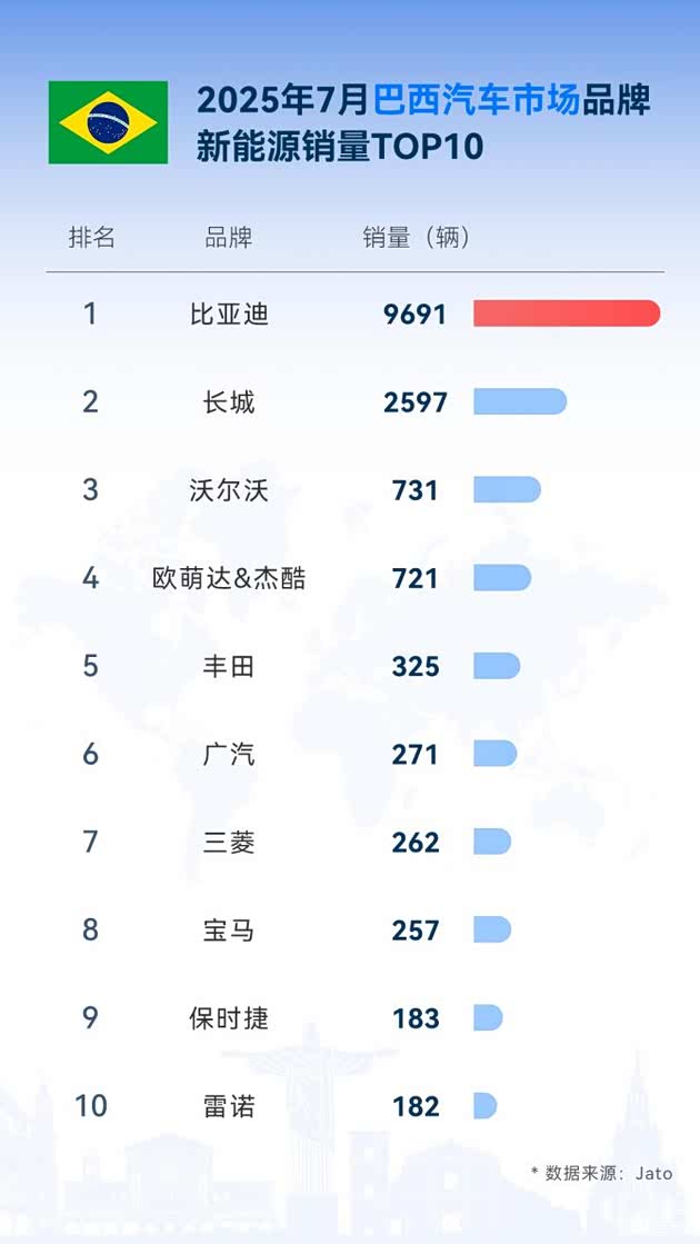 中国车企在全球汽车市场的影响力在加速显现:7月,比亚迪销量344296辆,其中海外销售80178辆,同比增长159.5%。在巴西、西班牙、意大利等国,比亚迪稳坐新能源销冠,成为海外市场和用户的信任之选。