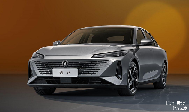 先来看长安逸达,其整体设计和自家的UNI-V非常相似,尤其是前脸部分,前进气格栅为无边界的点阵式设计,两侧大灯组造型较为狭长,前包围两侧还配有纵向布局的通风开口设计,下方是一个贯穿式的散热开口,。整个设计语言偏向未来、运动风格。
