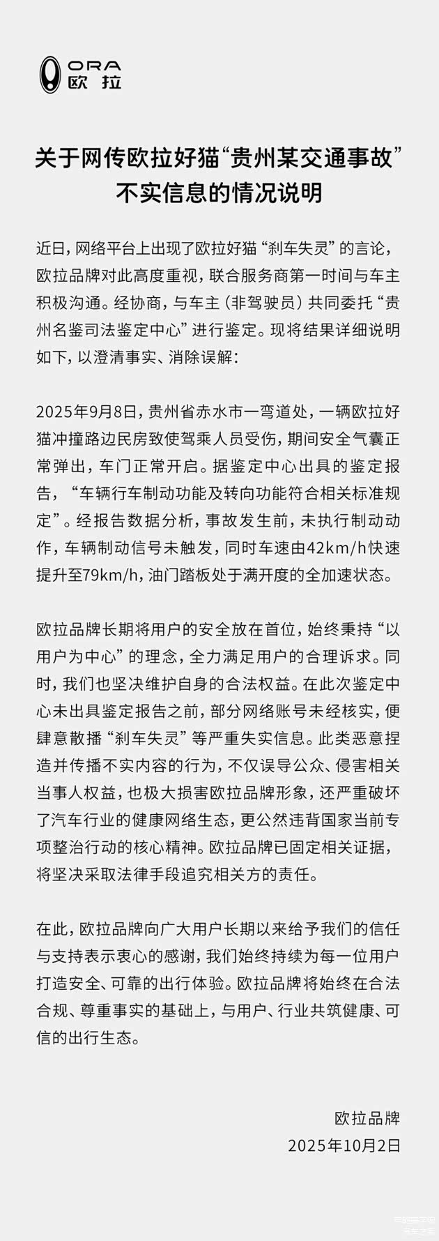 面对满天飞的谣言,长城没走寻常路:既没在社交平台发长文辩解,也没找KOL站台,反而选了条最“硬核”的路——拉着车主一起,委托第三方权威司法鉴定机构检测。整个过程全程透明,车主不仅能选检测机构,还能盯进度,杜绝“暗箱操作”。当“未执行制动动作,油门处于满开状态”的鉴定结果一出来,所有质疑声瞬间哑火,谣言直接被戳破。这操作看着简单,实则是长城的“技术秀”——不用华丽辞藻,只用事实说话。