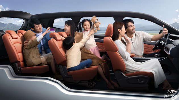 空间表现是豪越L的另一大亮点。2825mm的轴距配合2+3+2七座布局,每一排都有独立调节空间——第三排靠背支持8挡调节,1.8米成人乘坐也能轻松翘起二郎腿,还配有独立空调控制,彻底告别“小板凳”尴尬。若需要装载大件物品,放倒第二、三排座椅可秒变2.2米大床,后备箱容积最大可达2360L,露营装备、儿童自行车、渔具等轻松收纳;日常使用五座模式时,628L的后备箱也能满足全家购物需求,左右双通道设计更让第三排进出方便,老人小孩上下车不费劲。
