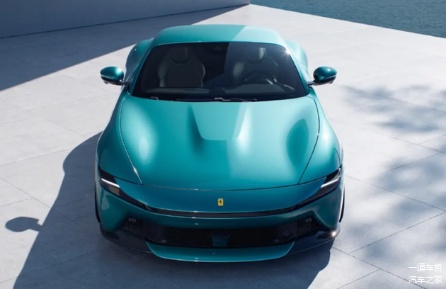 Amalfi 的外观设计颠覆与传承并存,堪称流动的空气动力学教科书。前脸取消传统格栅,深色凹条上方的悬浮式同色前翼成为视觉核心,传感器与前大灯被巧妙隐匿其中,搭配能优化冷却效果的旁通通道,让简洁造型与实用功能达成完美统一。首发的 Verde Costiera 蓝绿色车漆,宛如阿马尔菲海岸的海水在阳光下流转,为这份机械暴力注入诗意。