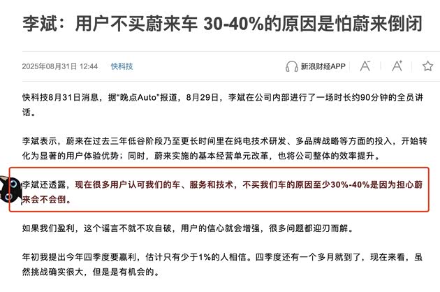 确实蔚来已经到了不得不盈利的时间点,李斌称因为「担心蔚来会倒闭」至少流失了 30-40%的订单,已经连续亏损 11 年的蔚来也该自己挣钱养家了。