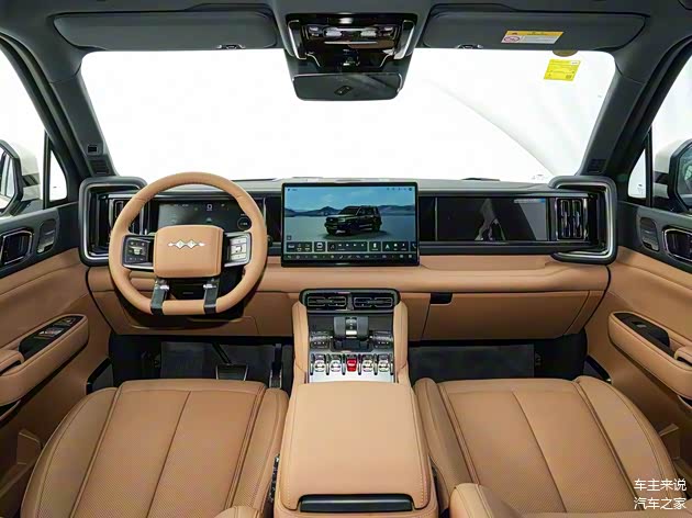 高配车型搭载华为乾昆 ADS 4 辅助驾驶系统,车顶有激光雷达加持,全车配备 24 个智能驾驶传感器,包括 5 个毫米波雷达、5 个高清摄像头及 12 个超声波雷达,实现 L2 + 级智能辅助驾驶。ACC 自适应巡航过弯时无需频繁接管方向盘,自动泊车功能能精准识别车位,全景可视倒车影像可将障碍物距离精确到厘米显示,夜间使用也清晰可靠。主动安全方面,11 个安全气囊(含后排座椅侧气囊)、主动刹车 + A 柱疲劳监测系统全方位防护,还标配车外空气质量感知系统与远程高温杀菌功能,守护座舱健康。户外场景中,新车的6kW VTOL 外放电功能堪称 “移动电站”,能支持电烤炉、咖啡机、投影仪等多种电器,露营时煮火锅、看电影都不成问题,可选装 2.5T 拖挂资质,轻松满足拖挂房车需求。大尺寸全景天窗不仅能欣赏风景,紧急情况下还可作为逃生通道,实用性拉满。