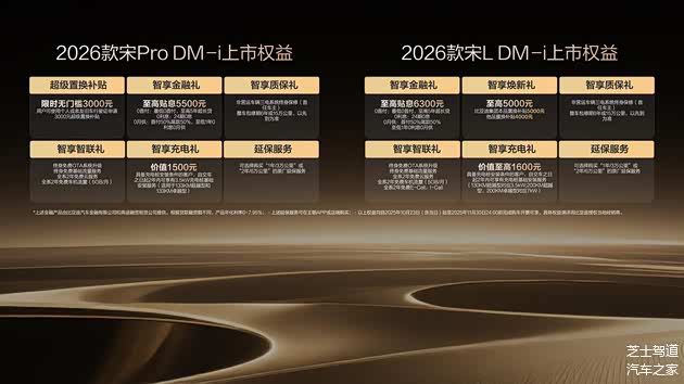 其中,2026款宋L DM-i售价13.98-15.68万元,2026款宋Pro DM-i超级置换权益后,限时售价9.98-12.28万元。同时,两款车型均带来了丰厚的上市权益礼。