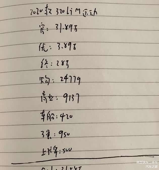价格方面,2020款宝马320LiM运动套装,官方指导价31.89万,优惠幅度在3.89万左右,终端裸车成交价28万左右,全部落地再加购置税24779,车船税420,强险950,商业险9137,上牌500,共合计31.58万左右。