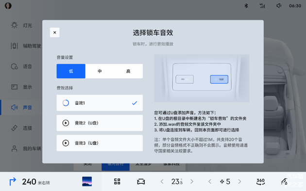 本次升级聚焦用户高频场景,锁车音效支持全系车型自定义——预设“跃动银河”“好运布谷”等多样音效,更可通过U盘导入专属音频,打造个性化听觉标签。休憩空间新增“极地之光”主题,搭配主题壁纸与沉浸式声效,副驾小憩功能同步支持语音操控,但需注意:当电量低于25%时系统将自动限制进入,确保用车安全。