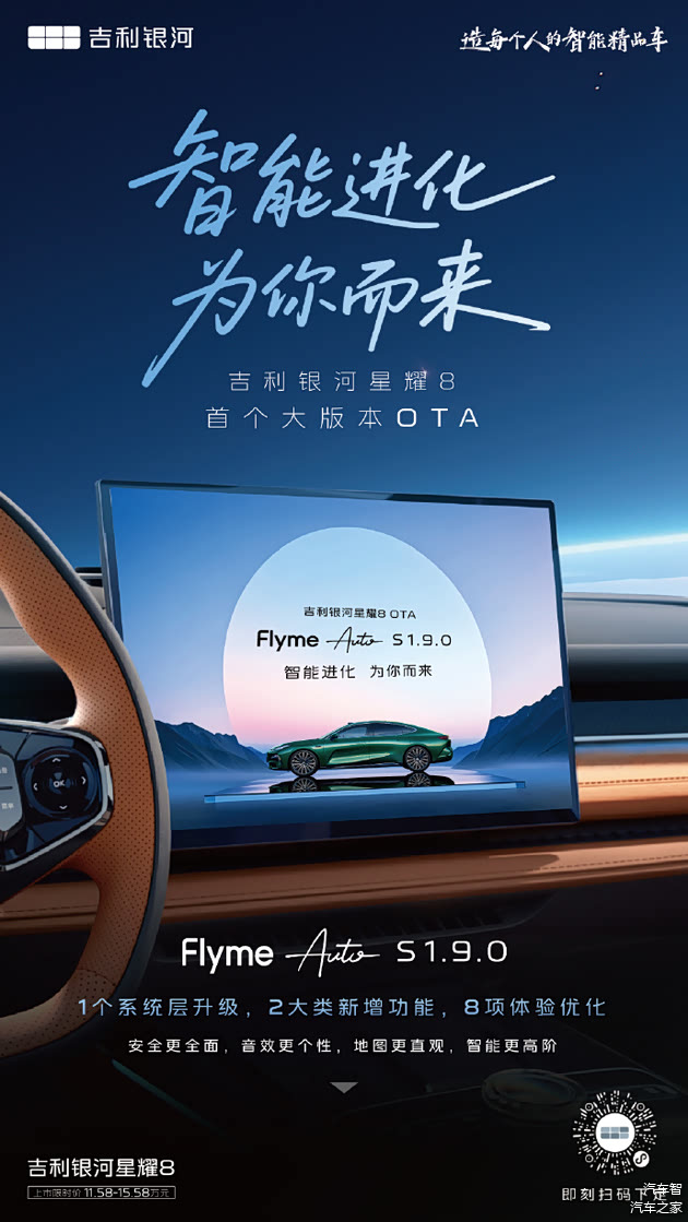 2025年10月23日,吉利银河星耀8正式推送首个大版本OTA,全面焕新银河Flyme Auto S1.9.0智能座舱系统,从系统底层到用户体验完成多维升级,以“常用常新”的硬核实力重新定义智能出行新标准。