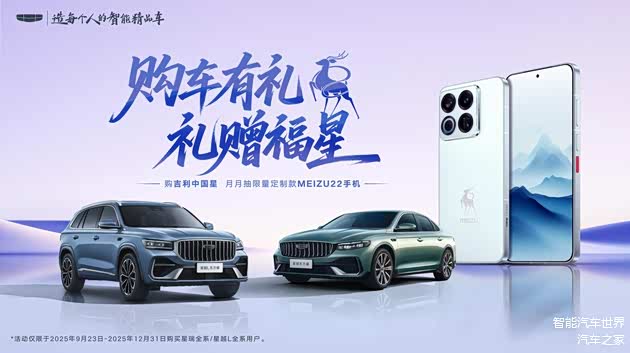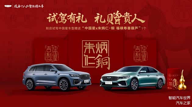 据悉,即日起至10月31日到店试驾中国星星瑞全系、星越L全系车型,可获得“朱炳仁·铜——福禄寿喜葫芦挂件”一份。此外,即日起至12月31日前,针对购买中国星星瑞全系、星越L全系的用户,每月将抽取 300 名幸运用户,赠送中国星东方曜限量定制款 MEIZU 22 手机。