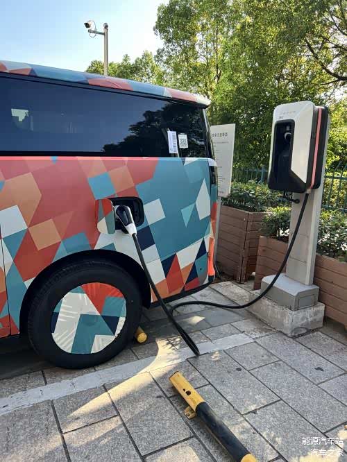 充电时它安静地在那,但庞大的车身在充电车位里还挺显眼的。这尺寸,配上新能源动力,思路清奇。