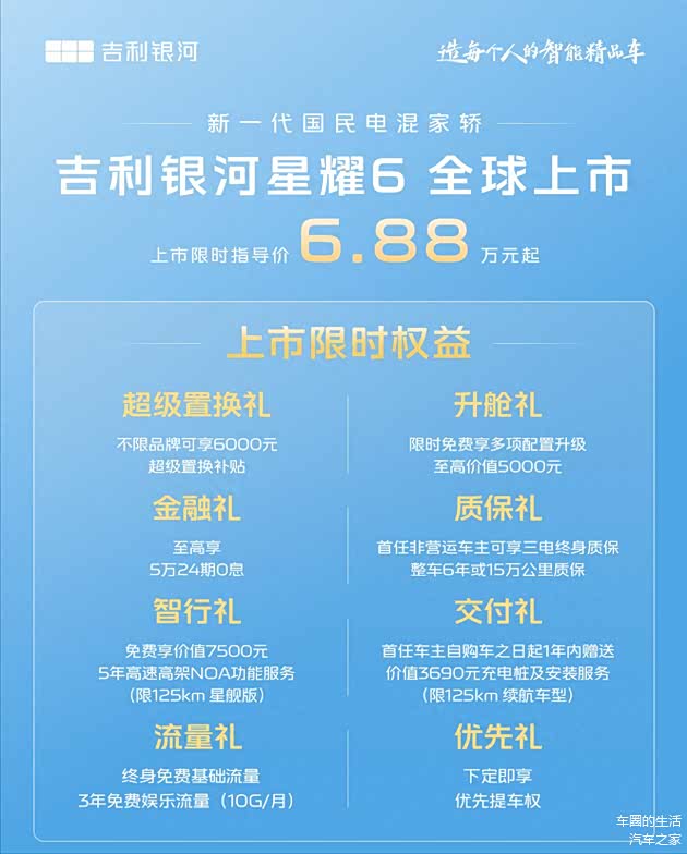带娃去游乐园,婴儿车、玩具箱、野餐垫堆得满车乱晃?开车时想调导航,手忙脚乱还怕分心?10月30日上市的吉利银河星耀 6,用6.88万起的限时价,把大空间和智能配置装进了8万级插混家轿里,让家庭出行从此告别局促与繁琐,妥妥的新一代国民电混家轿该有的样子。