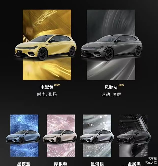 二、凌厉动感姿态,年轻运动气息明显从车身侧面来看饱满厚实,简洁的腰线从大灯流动至后轮拱凸显运动气息,值得一提的是配备了纯平侧窗设计,主要是缝隙小视觉效果平整,在日常行驶中可以降低行驶风阻,并且还有无框车门设计和隐藏式电动门把手,开门的时候玻璃会微降,还有微动开关可以防止开门时玻璃磕碰损坏,我觉得其中的高亮黑钢琴烤漆装饰件凸显质感,比如保险杠、侧裙、三角窗等地方。尾部上端是镂空扰流板,体现出年轻运动气息,配备飞翼星芒贯穿式尾灯组,内部光源清晰可见,也就点亮可以增加辨识度,下部凸起的扩散器看起来更富有肌肉感,我觉得开在路上回头率也不错,这台车的配色挺丰富的,分别有电掣黄、风驰灰、星夜蓝、摩根粉、星河银、金属黑配色,不同的颜色我觉得在视觉上也是不一样的,比如风驰灰灵感来自于赛车赛道的速度和力量感,跑在路上运动气息更加明显。