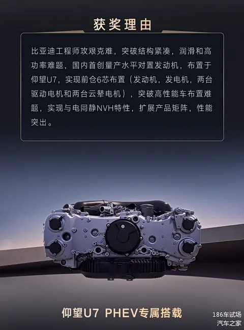 “中国心”年度十佳发动机及混动系统评选,是国内动力技术领域的权威标杆,其评审标准涵盖技术先进性、市场表现、用户口碑等多个维度。仰望U7的2.0T水平对置发动机能够在众多竞品中脱颖而出,核心在于它实现了国内首创的技术突破——比亚迪工程师攻克了结构紧凑、润滑难题与高功率输出的三重挑战,打造出量产水平对置发动机。