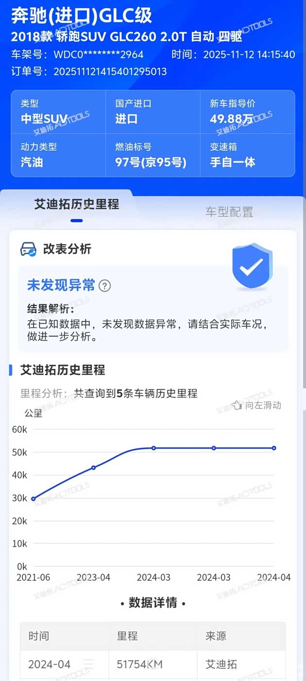 奔驰GLC Coupe毕竟是小众车款,市场保有量不大,经过半个月的找车,就很容易过滤掉大部分的车源,最后在广州找到一台原版原漆,小公里数的车源,原车主是一位女士,其实找车过程中,我们发现大部分车源的过往车主,都是女性,可以看到这款车型相当受女性欢迎,毕竟品牌和颜值是女生买车重要的条件。