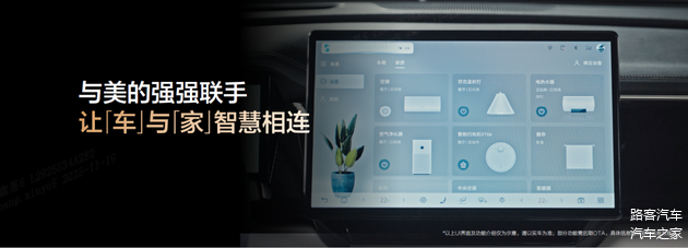 比亚迪更与众多合作伙伴联手,带来了唐L生态大礼包,构建起完整的“人x车x家”生态。最为重磅的是,比亚迪与美的强强联手,让“车”与“家”智慧相连。用户在家中即可通过智慧屏了解车辆状态,远程开启空调和座椅加热;在车上通过语音控制家中电器;当车辆接近家时,“回家模式”自动启动,提前打开家中灯光、暖气等设备,实现无缝互联体验。