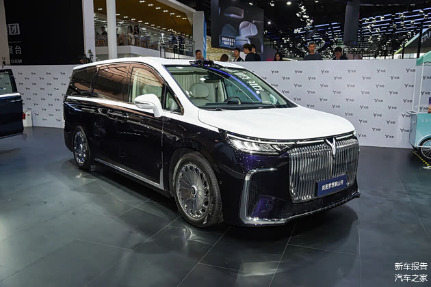 岚图梦想家山河版一出场就自带“文化滤镜”。它那“皓月紫云”和“拂晓金晖”的双色车身,前者像紫气东来的贵气,后者像朝阳初升的活力,光是配色就透着中式美学的讲究。车头设计更绝,分体式大灯配上贯穿式镀铬饰条,像古代官帽的帽檐,既有仪式感又不失现代感。20英寸的悬浮式轮毂上还嵌着岚图徽标,开起来像踩着“风火轮”,回头率拉满。