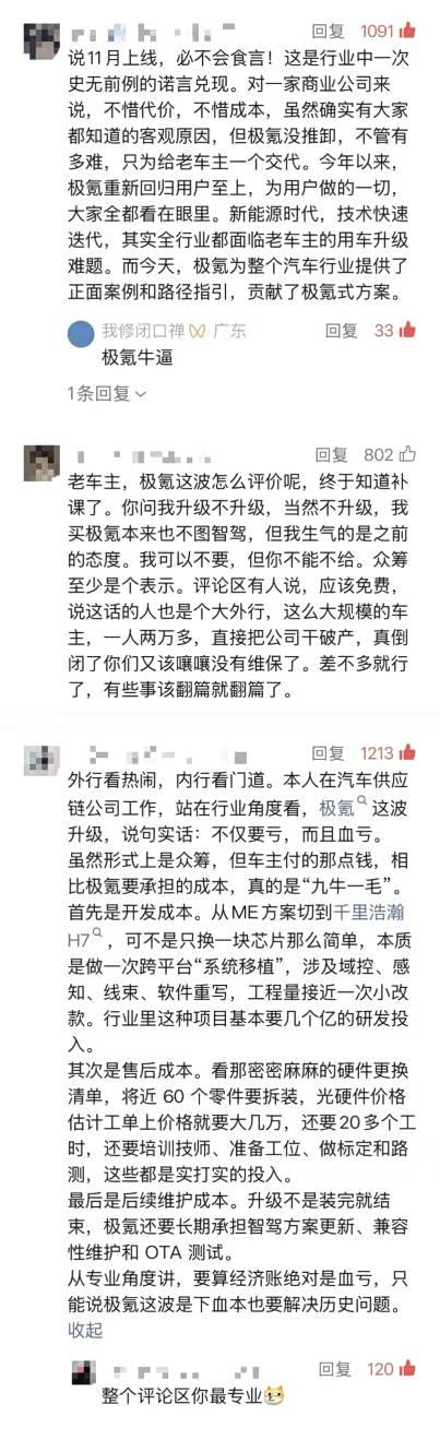 “之前总吐槽极氪,跟行业很多品牌一样只管卖新车,忘记老用户,但这次极氪愿意为老车主升级辅助驾驶系统,不管众筹成不成功,态度确实是到位了。”一位极氪001老车主评论道。类似的声音还有很多,不少用户认为,极氪在这几年新能源汽车快速迭代的过程中,虽然走过弯路,但今年开始明显“听劝”了,正在变得越来越好。