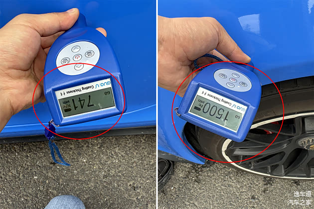 漆膜仪检测,车身左侧全都有钣金修复的痕迹,其为位置属于普通的喷漆,不过现在无法保证是否存在更换,全被车衣挡住了,肉眼看不出来。