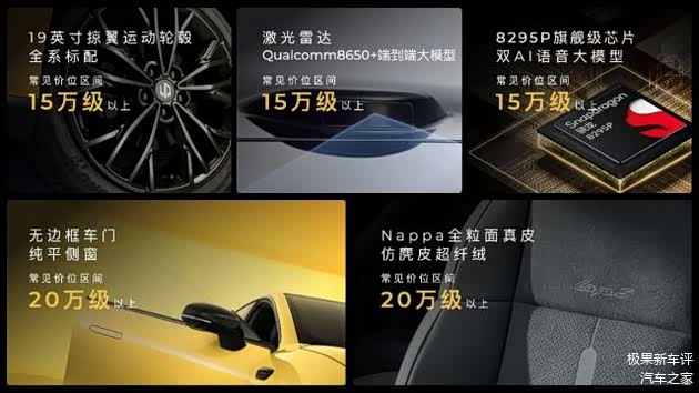 新车提供3款质感内饰,速域紫时尚动感,驰影灰格调沉稳,竞速灰则采用5.54m²仿麂皮超纤绒+Nappa全粒面真皮拼接,座椅上的"延伸赛道"纹理与"Lafa5"专属字标烫印,尽显超跑级座舱质感。Leap Sound12扬声器音响系统配合无麦K歌功能,带来舞台级听感,座舱秒变私人LiveHouse。1.02㎡超大全景天幕搭配智能电动遮阳帘,以及多达25处的储物空间和435L的后备箱容积,则充分体现了对用户日常实用需求的深度洞察。