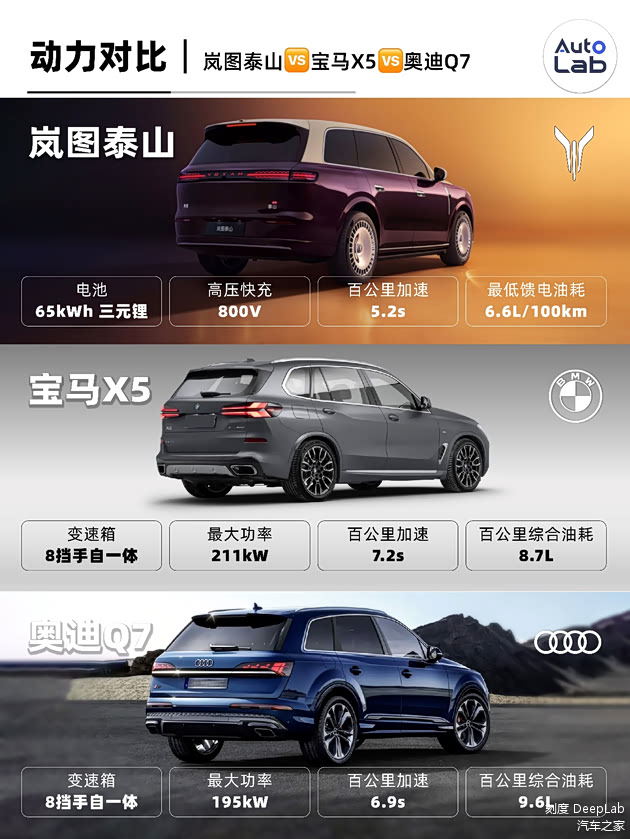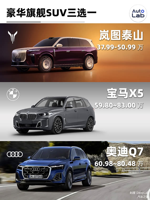 总的来说,如果你注重驾驶乐趣和动力表现,追求豪华感,宝马X5、奥迪Q7和岚图泰山确实符合消费者对豪华SUV的要求,你会怎么选择呢?