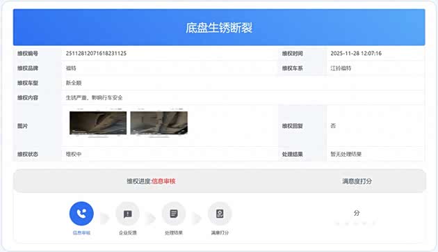 然而现实情况是,当前车辆的生锈问题格外突出,已影响到他的正常使用体验,因此他选择向车质帮进行投诉,希望能得到相关方的关注与处理。