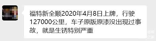 近日,车质帮收到江铃福特新全顺车主黄先生投诉,声称,其名下的福特新全顺车辆存在较为严重的生锈问题,这让他颇为困扰。