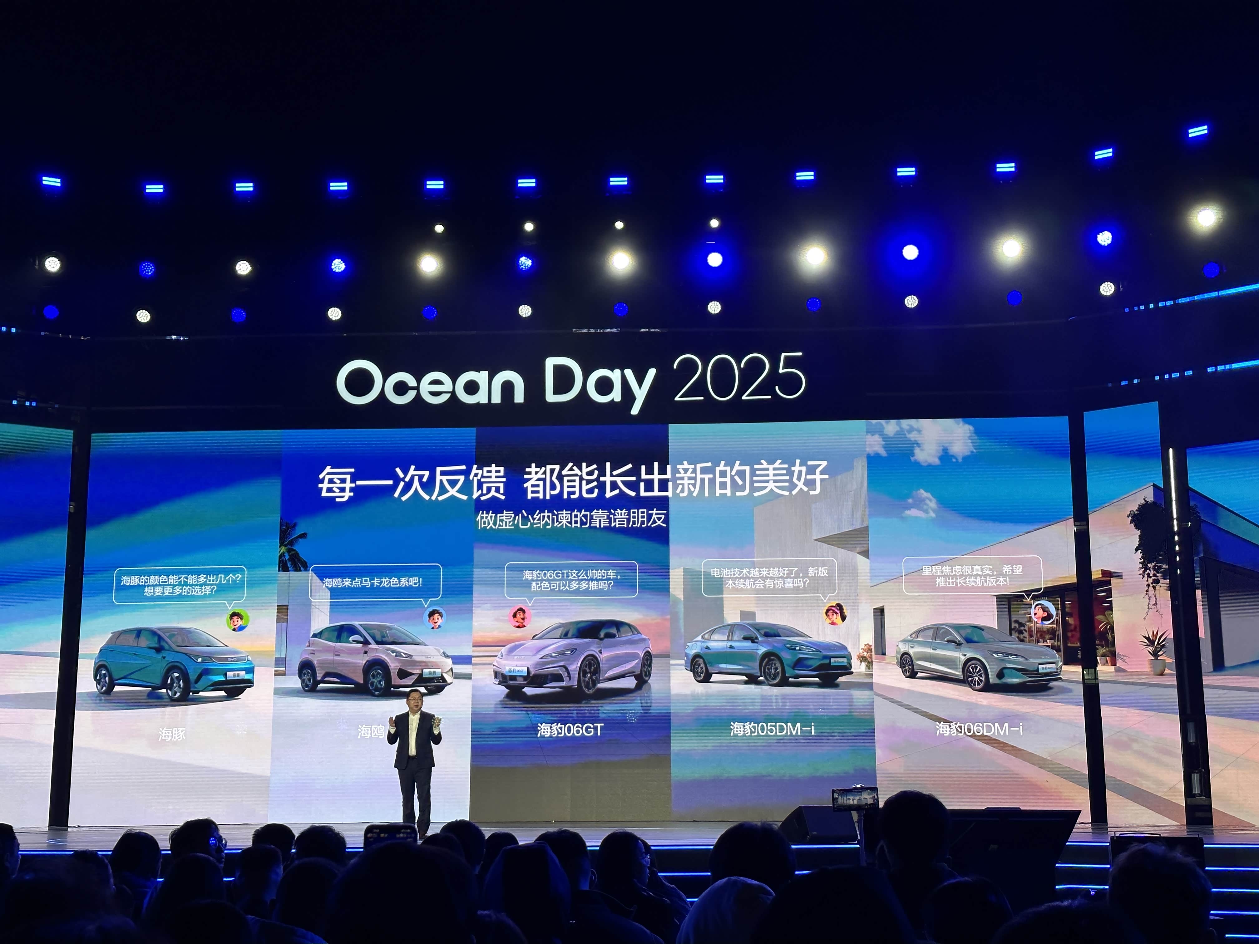 比亚迪海洋网在四周年盛典上以600万销量里程碑为核心,通过用户共创派对、高端双旗舰车型发布及深度互动体验,生动诠释了品牌与用户"双向奔赴"的内涵。 "海洋速度"创行业纪录 成立仅4年累计销量突破600万辆,相当于传统合资品牌15年的发展成果。2021年起步销量6万辆,到2025年1-11月单年销量已超203万辆,年均增长率惊人。四大爆款车型(宋PLUS、海鸥、海豚、海豹)均跻身"百万IP俱乐部",其中海豚成为最快达成百万销量的A0级纯电轿车,连续三年蝉联细分市场冠军。 高端化战略落地:双旗舰亮剑 正式公布海洋8系双旗舰命名——海豹08(大型旗舰轿车)与海狮08(大型旗舰SUV),定位"不为参数内卷,专为时代先锋"。