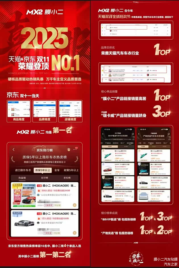 正是这些硬核的产品力,源源不断驱动销售浪潮。在刚刚结束的2025双11年终盛典中,膜小二分别在天猫 、京东平台荣耀登顶NO.1。标志着膜小二正在迈向一个真正赢得中国消费者信赖的一线国民品牌。