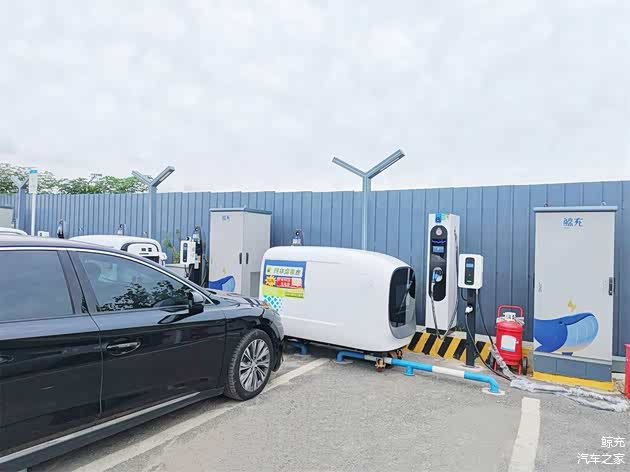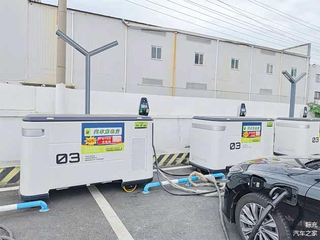 鲸充移动储能充电车,相当于一个超大容量的汽车充电宝。该设备内置180度电池,最高支持120kW充电功率输出,满电状态下可为3–4辆新能源车补电至80%,显著提升了应急充电效率。