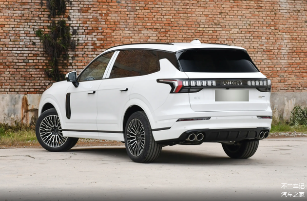与此同时,2026款领克09的侧面依旧使用潮流的悬浮式车顶设计,并且搭配了隐藏式门把手和黑色的侧裙装饰条,让人感受到一些科技感与时尚气息。在车尾处,2026款领克09的尾灯辨识度特别高,也许有人不喜欢它尾灯的设计风格,但是在我看来,它的尾灯看起来非常个性,能给人留下很深的印象。而且2026款领克09的后包围处,不仅采用大面积的黑色饰板装饰,还有双边共四出排气造型,这样的设计展现出极强的运动气息,让人知道它是一款性能很强的车型。
