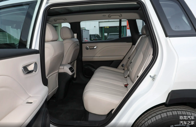 而来到后排,AION i60的空间表现让人感到满足,而且头顶的全景天窗也有更务实的电动遮阳帘。不仅如此,AION i60的后排座椅靠背也支持多档调节,且位于后排右侧还有专属的小桌板。