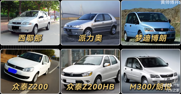 随后两年半时间内,用菲亚特派力奥、西耶那、梦迪博朗换标、换壳,搞出了众泰T200、T200HB、M300三款车。