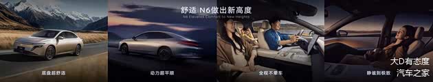 N6 的第二张核心王牌,是无可匹敌的极致舒适体验。新车空间 “得房率” 高达 87%,宽适的驾乘空间稳居同级第一。前排配备与 N7 同款的 “百万级大沙发”——AI 零压云毯座椅,内置 “自适应体态” AI 算法,且支持 OTA 升级,可根据驾乘者状态动态调整,越坐越舒适;后排搭载全新研发的零压云毯大沙发,让全家出行都能享受百万级的舒适体验。